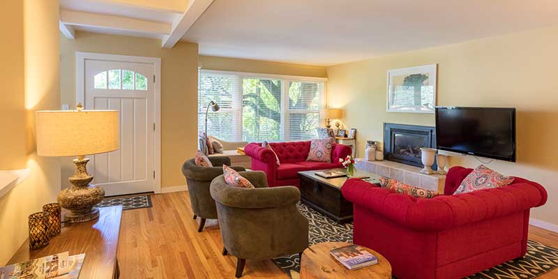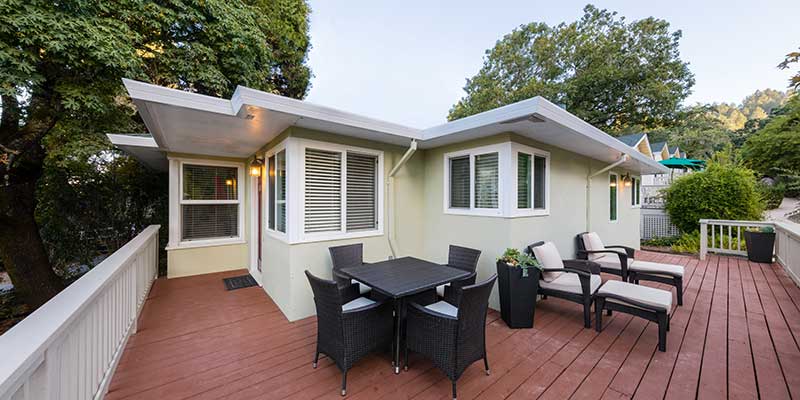 The Aurora House is the perfect rental for your small group to Napa Valley. Boasting 2 bedrooms and one 1 bath home featuring a gas fireplace, comfortable contemporary furnishings, and fully stocked kitchen. As you sip coffee on your patio, enjoy one of the valley's most beautiful spectacles - the hot air balloons in front of the panoramic view of the Palisades Mountains. Complimentary bicycles are available for our guests to enjoy cruising to downtown Calistoga's premier dining and world-class tasting rooms.