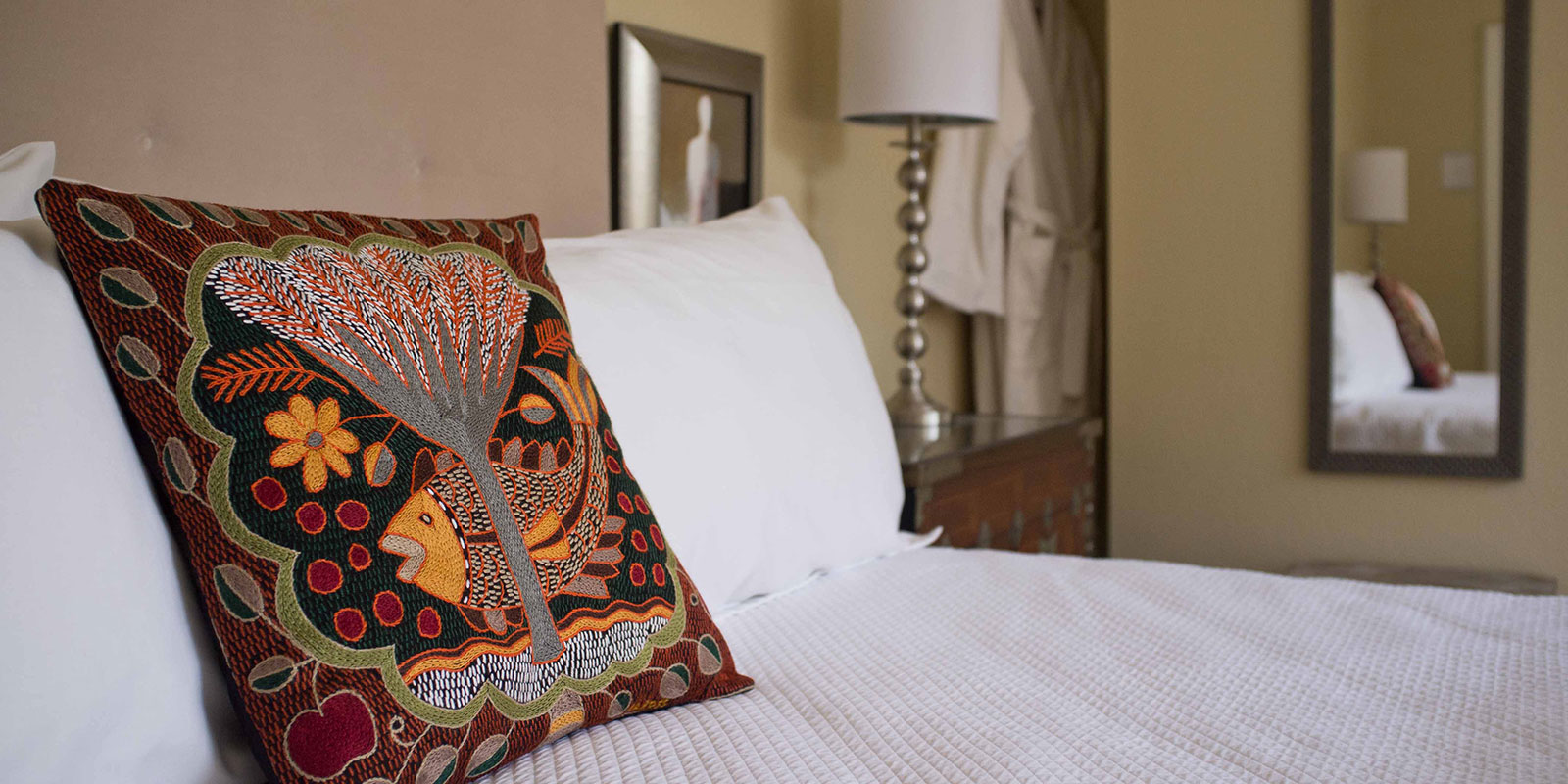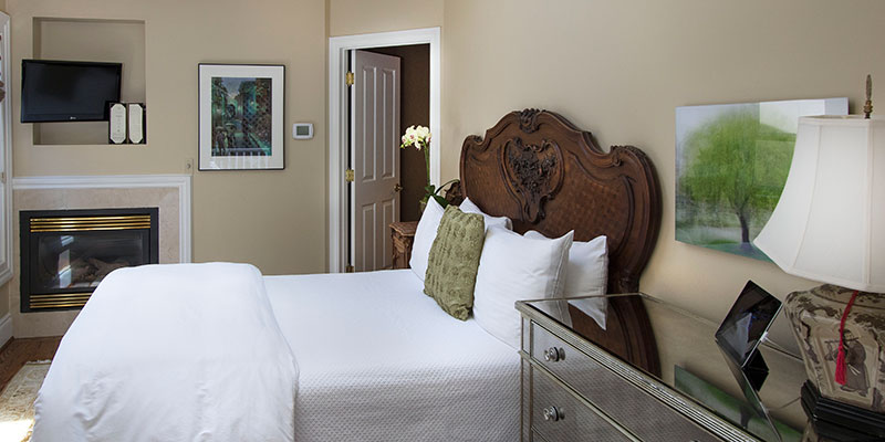 Embrace Calistoga offers 5 rooms all individually designed featuring the finest fabrics, linens and uniquely appointed. All rooms are bathed in a muted backdrop of soft wall tones accentuated with original art and a harmonious blend of styles. Inspirational, yet calming. Current, yet timeless. Sophisticated, yet whimsical.