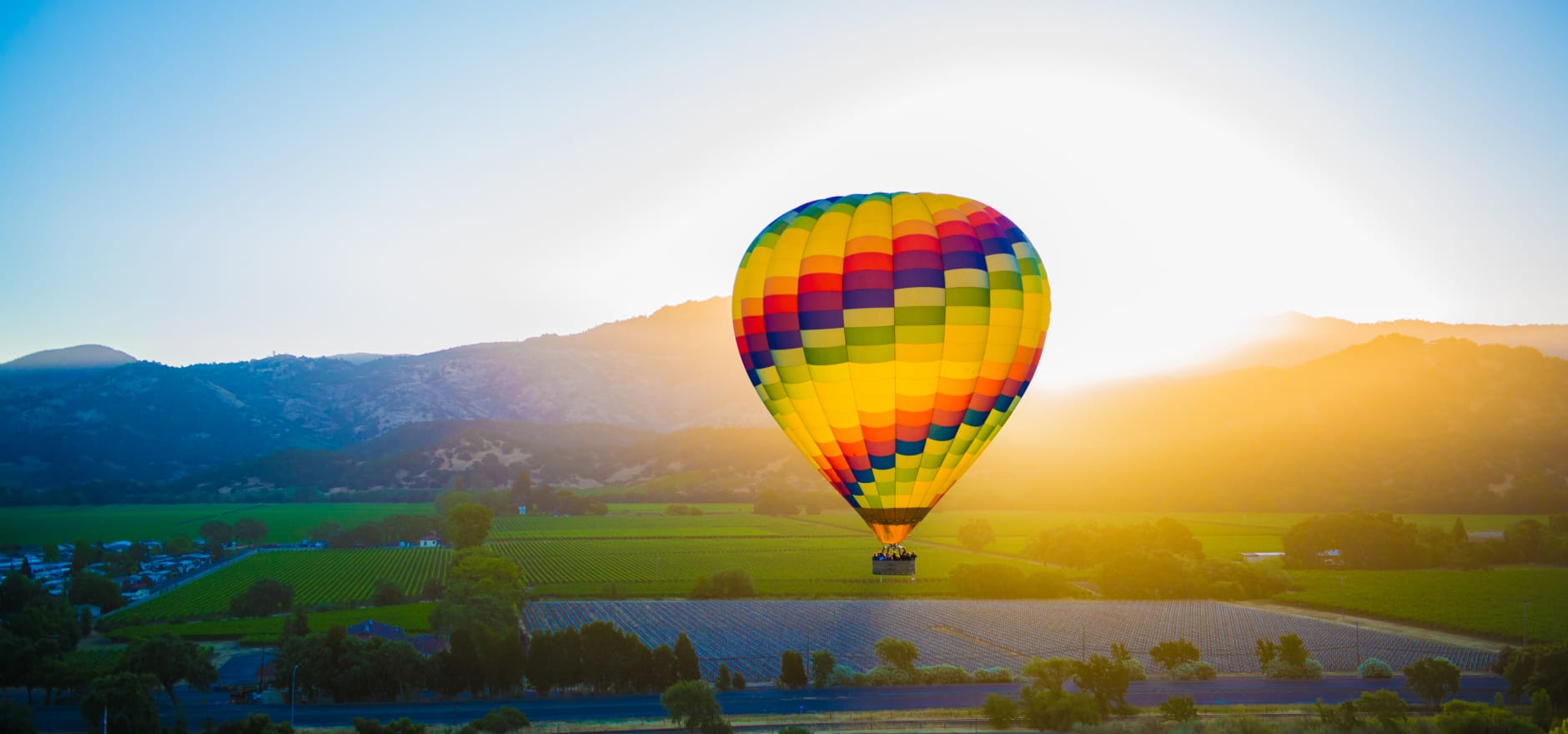 Take a hot air balloon ride high above the clouds and discover the stunning landscape of Napa Valley. This fun-filled adventure is one of the most memorable ways to tour the famous Napa Valley wine region. In fact, when it comes to things to do, hot air balloons in the Napa region are among the most popular activities. Visitors who book a Napa Valley hot air balloon ride take in breathtaking views of Wine Country against a perfect blue sky. Best of all, hot air balloon rides can be enjoyed as a fun group activity or as a romantic experience for just the two of you. It’s not uncommon to hear about a special someone popping the question during a hot air balloon ride in Napa.