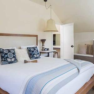 Each guestroom features a fireplace, a king-sized bed heaped with pillows and large brilliantly painted bathrooms with double sinks. There are two spacious guestrooms in the main house and the courtyard rooms surround the garden.