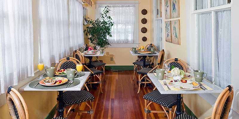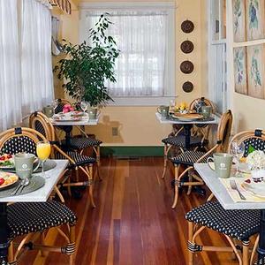 Lavender is intimate and luxuriously cozy. It combines the warm colors of Provence with contemporary design elements, to create a vibrant setting that blends old and new. A lovely heritage home is the centerpiece of the inn's four buildings; the warmth of its wraparound porch is echoed in the enclosed veranda where breakfast is served daily. This Four Sisters Inn blends the modern luxuries and sophisticated services of a boutique hotel with the traditional amenities and architecture of a B & B.