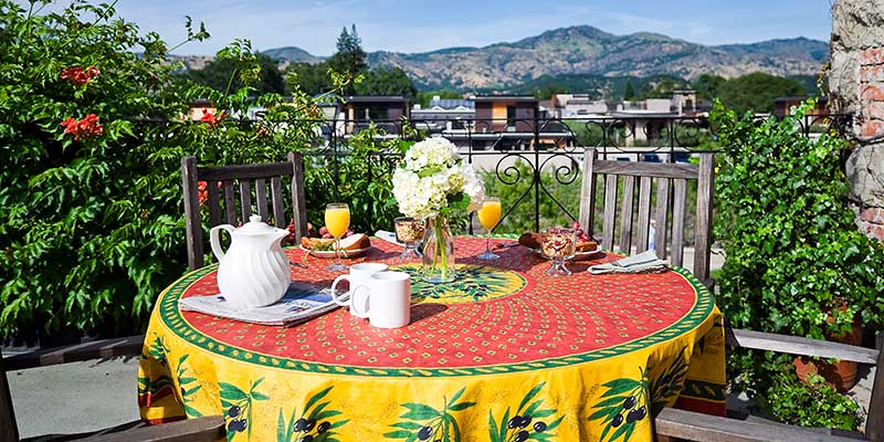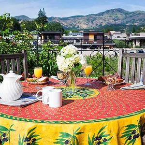 Three lovely buildings situated on half an acre of beautifully landscaped gardens comprise the Maison Fleurie, a sanctuary for guests traveling to the Napa Valley. The Maison Fleurie, our "flowering house," welcomes the visitor to an inn reminiscent of southern France. Finely crafted furniture, rich fabrics, and a huge brick fireplace lend their ambiance to this historic main building, where a bountiful breakfast and afternoon wine and hors d'oeuvres are served. Borrow our bicycles for a ride through charming Yountville and the Napa Valley. Explore tasting rooms, wine caves and stylish boutiques along the way. The pool and oversized hot tub will welcome you back after a full and fun day. Each guestroom features a queen or king bed, and many feature a fireplace, patio or jetted spa tub.