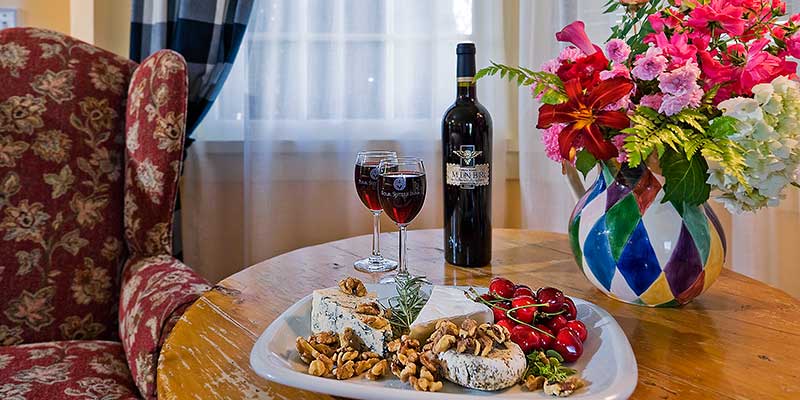 Guests enjoy complimentary breakfast, afternoon wine and hors d'oeuvres and freshly-baked cookies.