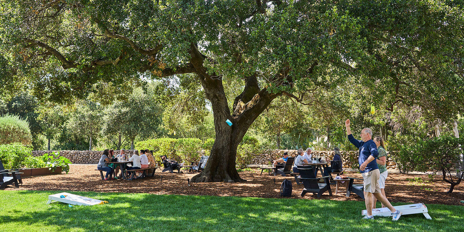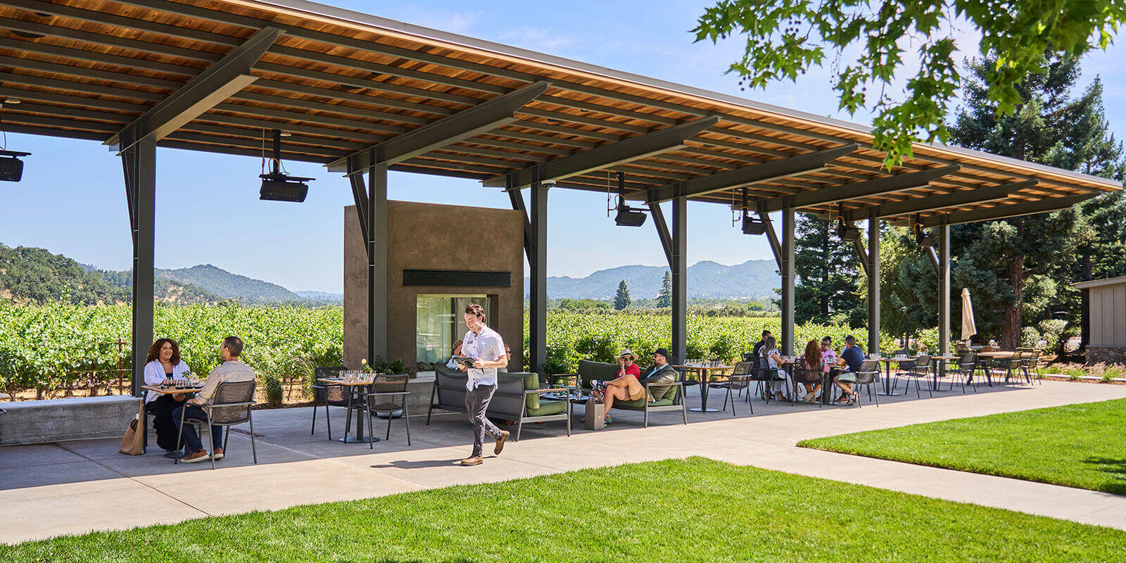 Unwind in our modern courtyard surrounded by vineyards and scenic views. Whether you’re sipping with friends or relaxing with your pup, our outdoor space is designed for comfort and connection.