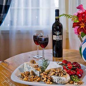 Guests enjoy complimentary breakfast, afternoon wine and hors d'oeuvres and freshly-baked cookies.