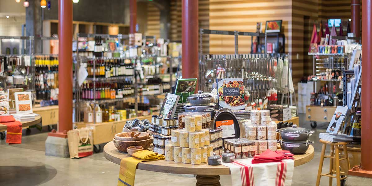 Gather your wish list for everything food- and wine-related, and come prepared to shop! The Spice Islands Marketplace is stocked with cookware, bakeware, kitchen tools and utensils, items for kids, gourmet foods, and more than 1,700 cookbook titles. Purchase our house-made chocolates and watch our baking and pastry arts degree students in action in the Ghirardelli Chocolate Discovery Center next door. Whether you’re shopping for yourself or searching for the perfect gift for the special foodie in your life, The Spice Islands Marketplace is the place to go to for your food and wine needs.